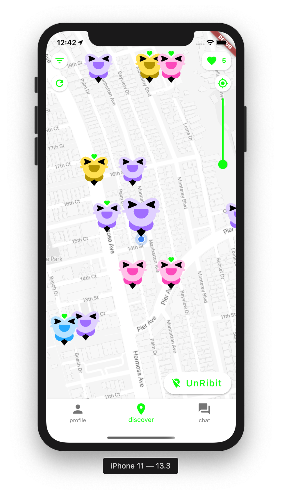 Press the "Ribit" button to place a marker on the map. You will be displayed to interested individuals in your local area.
